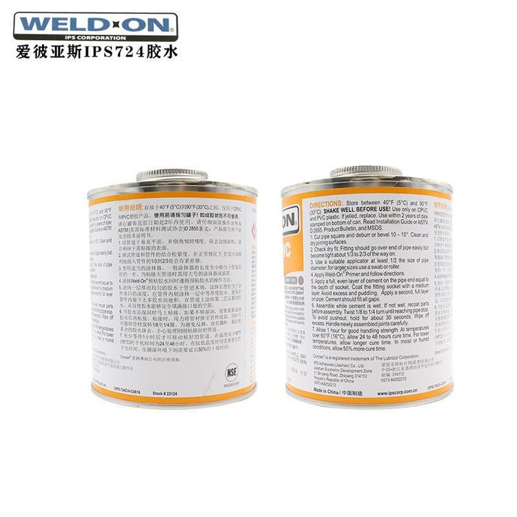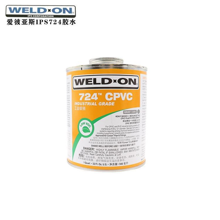 Weld-On? 724? 灰色高等粘度,中等干化時間,適合12’’(DN300)以下所有規格受口松緊適中的CPVC管和管配件。設計用于包括次氯酸鹽溶液在內的嚴苛的化學腐蝕環境,在廢水和水處理工業領域有優秀的表現,同時可以用于PVC化工管道系統,符合